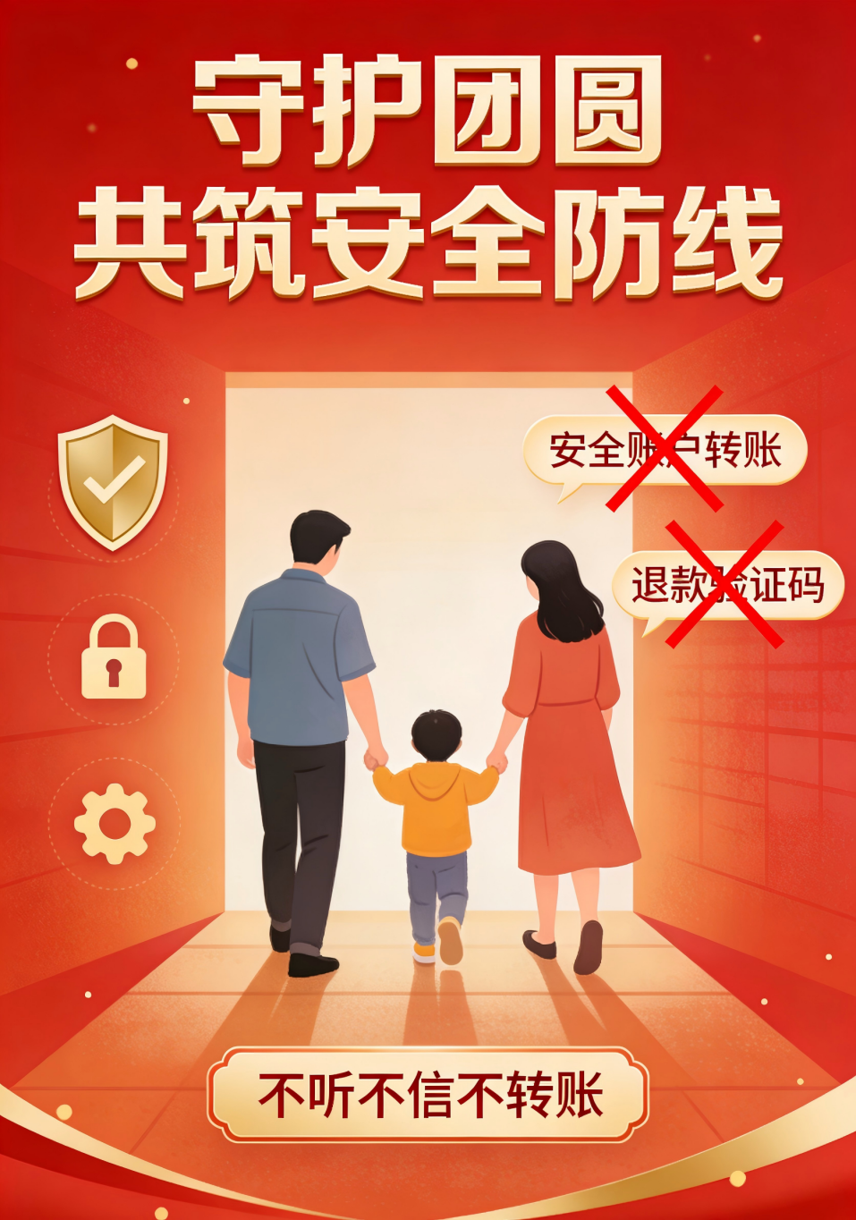 团圆是春节的底色,平安是幸福的前提。反诈没有旁观者,人人都是参与者。希望大家不仅自身牢记反诈知识,还要向家人、亲友特别是老年人、青少年等易受骗群体广泛宣传,共同织密春节反诈 “防护网”,让不法分子无机可乘,度过一个平安、祥和、欢乐的新春佳节!